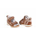 Удобные открытые ортопедические сандалии. Выполнены из коричневой кожи с серыми вставками из нубука. В комплект входит пара ортопедических стелек.