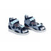 Удобные открытые ортопедические сандалии. Выполнены из серой кожи с синими вставками. В комплект входит пара ортопедических стелек.