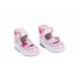 Стильные и удобные закрытые ортопедические сандалии для девочки на липучках. Розовая глянцевая кожа со вставками цвета фуксии. Декорированы "цветочками". В комплект входит пара ортопедических стелек.