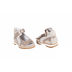 Удобные и стильные открытые ортопедические сандалии для маленьких модниц на липучках. Кожа песочного цвета и серебряные звёздочки. В комплект входит пара ортопедических стелек.