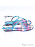 Обворажительные сандалии от KLIMINI выполнены из сине-бирюзового лака.Модель отлично фиксируется на ноге при помощи ремешка с пряжкой.Украшает модель интересная уветная обтяжка.Не высокий каблук обеспечитт уют и легкое передвижение.Мягкая кожаная стелька и подкладка обеспечит комфорт при носке.Высота каблука ок. 0,5 см.Подошва - тунит.Рекомендуем подбирать обувь больше на размер.Произведено в Бразилии.