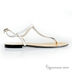 Оригинальные сандалии от Kurt Geiger. Белоснежный цвет и маленькая ширина кожаных полосок, из которых выполнена модель, создают ощущение легкости и невесомости. Украшены небольшими блестящими клепками. Интересный и удобный вариант летней обуви.