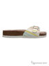 Сандалии с комфортной стелькой. Верх в полоску с металлической пряжкой.