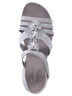 Сандалии на сплошной подошве с круглым открытым мысом. Модель с застежкой на липучку украшена цветочной аппликацией.