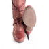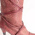 Красивые и женственные сапоги от ALBA. Взгляд притягивают необычные детали. Во-первых, это декоративная перфорация и рисунки золотистой краской на голенище, во-вторых – декоративные шнуры, обвивающие голенище. Все это исполнено в коже приятного глазу темно-оранжевого цвета. Высокий тонкий каблук органично дополняет композицию. Толстая подошва отдает дань модным тенденциям. Эффектное дополнение демисезонного гардероба стильной особы.