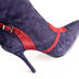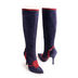 Восхитительные высокие сапоги от ALBA. Темно-синяя замша эффектно контрастирует с алым декором. Высокий тонкий каблук делает эту пару особенно женственной.