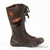 Стильные сапожки коричневого цвета, идеально подойдут для осенне-весеннего времени года. Изделие выполнено из искусственной замши и кожи. Боковые части декорированы нашивками и вставками из искусственной лакированной кожи. Внутри подклад из плотного текстиля. Высокая шнуровка и молния сбоку. Подошва выполнена из литой рельефной резины.