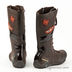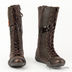 Стильные сапожки коричневого цвета, идеально подойдут для осенне-весеннего времени года. Изделие выполнено из искусственной замши и кожи. Боковые части декорированы нашивками и вставками из искусственной лакированной кожи. Внутри подклад из плотного текстиля. Высокая шнуровка и молния сбоку. Подошва выполнена из литой рельефной резины.