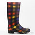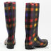 Яркие и стильные осенние сапожки. Модель выполнена из высококачественной резины и дополнена необычным принтом в виде разноцветных прямоугольников. Мягкий мысок. Высокое голенище. Рифленая резиновая подошва имеет противоскользящее покрытие.