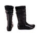 Сапоги высокие из черной кожи с боковой молнией и обвязанным верхом.