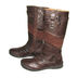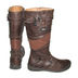 Высокие сапоги из коричневой кожи с боковой молнией, декорированы пряжками.