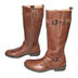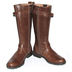 Высокие сапоги из коричневой кожи с боковой молнией, декорированы пряжками.