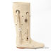 Стильная модель осенних сапог из натуральной замши очень мягкой выделки. Обувь выполнена в белом цвете. Удобная колодка. Высокие голенища с фигурной перфорацией, металлическими клепками и бахромой. Плоская подошва. Внутренняя часть изделия, стелька и подметка выполнены из натуральной кожи.