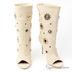Оригинальные сапоги с открытым мысом. Лицевая часть выполнена из натуральной замши с фигурной перфорацией и металлическими клепками. Удобная колодка. Высокий каблук. Изнаночная часть выполнена из натуральной кожи. Кожаная стелька и подметка.