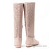 Стильная модель сапог из натуральной замши очень мягкой выделки. Обувь выполнена в розовато-бежевом цвете. Удобная колодка. Высокие голенища с фигурной перфорацией. Плоская подошва. Застежка -молния, проходит по внутренней стороне. Внутренняя часть изделия, стекла и подметка выполнены из натуральной кожи.