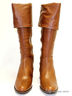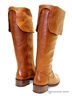 Стильные ботфорты с отворотом - обувь для тех, кто умеет подчеркнуть свою индивидуальность,можно регулировать высоту изделия.Ботфорты с застежкой на молнию сбоку, закругленной формой мыска. Подкладка изделия выполнена из байки.Материал верха :разбитая кожа коньячного цвета.Подошва с надежным ,нескользящим протектором из п\у. Высота голенища ок.52 см, обхват голенища ок. 40 см, высота каблука ок. 4 см.Рекомендуем подбирать обувь больше на размер.Произведено в Бразилии.