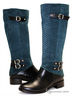 Ботфорты Klimini выполнены из комбинации натуральной кожи черного цвета и нубука с принтом "рептилии" темно-бирюзового цвета.Детали: удобная колодка, укороченная молния для удобства одевания,декоративные ремешки с фарнитурой.Внутри-байка и натуральный мех,которые обеспечат Вам комфорт и тепло при носке этой обуви.Высота каблука ок3см. Высота голенища 38см.Объем голенища 40см.Подошва тунит.Рекомендуем подбирать обувь размер в размер.Произведено в Турции.