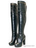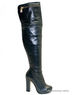 Ботфорты KLIMINI прекрасно дополнят ваш модный образ.Обувь выполнена из натурального кожи темно-зеленого цвета.Для удобства одевания обувь снабжена длинной молнией сбоку и дополнительно в верхней части широкой резинкой.В верху голенище декорировано крупной молнией.Высокий каблук скомпенсирован невысокой платформой.Внутри - подкладка (до щиколотки) и стелька из натурального меха.Высота каблука ок.11 см.Высота плато ок.1см.Подошва-тунит.Высота голенища ок.54 см.Объем голенища ок 36 см.Обувь рекомендуем подбирать размер в размер.Произведено в Турции.