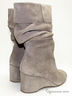 Отличные замшевые демисезонные сапоги на танкетке.Голенище декорировано отворотом и мягкими складками..Высота танкетки-ок.6см.Внутри-подклад:обувной шелк,стелька-натуральная кожа.Высота голенища ок25см.Обхват голенища-ок.35см.Рекомендуем подбирать обувь больше на размер.Сделано в Бразилии.