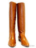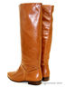 Практичные сапоги от KLIMINI на низком каблуке.Модель исполнена из высококачественной кожи с располировкой коньячного цвета.Внутренняя отделка выполнена из байки,вкладная стелька- натуральная кожа. Подошва - п\у.Высота каблука ок 2см.Рекомендуем подбирать обувь больше на размер(обувь маломерит).Произведено в Бразилии.