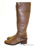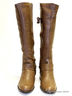 Комфортные сапоги на невысоком устойчивом каблуке.Модель снабжена застежкой на молнию до конца,дополена резинкой.Толстая подошва с протектором,материал п\у. Прекрасный вариант для повседневной носки.Материал подкладки: ворсин. Материал верха:натуральная кожа с растиркой серо- бежевого цвета.Неровный окрас в парах является задумкой дизайнеров,делается в ручную и не является браком. Высота каблука ок. 3,5 см. Высота голенища ок. 40 см,обхват голенища ок.37см.Рекомендуем подбирать обувь больше на размер.Произведено в Бразилии.
