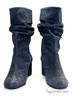 Отличные замшевые демисезонные сапоги на танкетке.Голенище декорировано отворотом и мягкими складками..Высота танкетки-ок.6см.Внутри-подклад:обувной шелк,стелька-натуральная кожа.Высота голенища ок25см.Обхват голенища-ок.35см.Рекомендуем подбирать обувь больше на размер.Сделано в Бразилии.