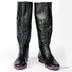 Стильные кожаные сапоги на плоской подошве. Прорезиненная подошва с мелкими протекторами приклеена к основанию изделия. Подкладка и стелька выполнены из кожи. Низкий взъем.