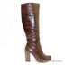 Эффектные демисезонные сапоги на высоком устойчивом каблуке. Верх выполнен из натуральной высококачественной кожи с располировкой. Внутренняя отделка исполнена из байки, стелька - из кожи. Удобная застежка на молнию до конца голенища - залог вашего комфорта. Подошва - полиуретан.