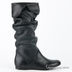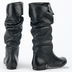 Стильные сапоги из натуральной кожи на плоской подошве. Резиновая подошва с неглубокой перфорацией приклеена к основанию изделия. Голенище с со складками с декоративным отворотом. Подкладка и стелька из тонкой шелковистой ткани.