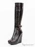 Высокие сапоги выполнены из натуральной кожи черного цвета на платформе. Прекрасно подойдет для смелого модного гардероба. Застежка молния.