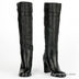 Стильные кожаные сапоги на каблуке с высоким голенищем. Прорезиненная подошва с неглубокими протекторами приклеена к основанию изделия. Подкладка и стелька выполнены из натурального меха, голенище с войлочной подкладкой. Средний подъем.
