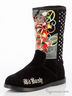 Сапоги Ed Hardy на резиновой подошве. Верх выполнен из искусcтвенной замши. Внутренняя отделка из искутсcвенного меха. Модель украшена вышивками, тату- принтами и металлической фурнитурой.