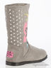 Детские угги Ed Hardy на черное подошве. Верх модели полностью выполнен из искусственного замша. Угги украшены яркими тату-принтами и стразами на задней планке.