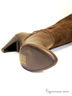 Стильные сапоги на небольшом удобном каблуке. Модель дополнена внутренней застежкой на молнию, которая облегчит надевание. Изящный носик дополняет стильный дизайн. Байковая подкладка и стелька из натуральной кожи обеспечит комфорт и тепло. Сапожки станут идеальным завершением Вашего модного образа. Высота каблука ок. 7,5 см. Материалы верха-высококачественная натуральная замша и кожа шоколадного цвета. Подошва - п\у. Обувь маломерит, рекомендуем подбирать обувь больше на размер. Произведено в Бразилии.