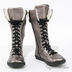 Стильные утепленные сапоги застегиваются на молнию и завязываются шнурками. Матовый верх изделия декорирован стразами