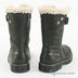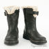 Утепленные сапоги с жестким мысом застегиваются на молнию. Толстая подошва, крупный протектор. Изделие украшено ремешком и металлическими элементами. Голенище мягкое.