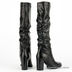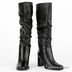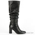 Стильные кожаные сапоги на каблуке с высоким голенищем. Прорезиненная подошва с неглубокими протекторами приклеена к основанию изделия. Подкладка и стелька выполнены из натурального меха, голенище с войлочной подкладкой. Верх изделия дополнен складками из кожи. Средний подъем.