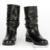 Стильные кожаные сапоги на плоской подошве. Прорезиненная подошва без протекторов приклеена к основанию изделия. Подкладка и стелька выполнены из натурального меха, верхняя часть изделия из байки. Средний подъем.