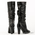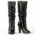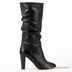 Стильные кожаные сапоги на устойчивом каблуке с голенищем 3/4. Модель без застежки. Внутренняя нижняя часть изделия дополнена натуральным мехом, голенище дополнено байковой подкладкой (еврозима). Прорезиненная подошва с небольшим протектором.