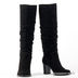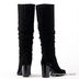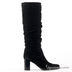 Стильные велюровые сапоги на устойчивом каблуке с высоким голенищем. Без застежки. Внутренняя нижняя часть изделия дополнена натуральным мехом, голенище дополнено байковой подкладкой (еврозима). Прорезиненная подошва с небольшим протектором.