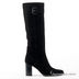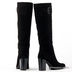 Стильные велюровые сапоги на устойчивом каблуке с высоким голенищем. Без застежки. Внутренняя нижняя часть изделия дополнена натуральным мехом, голенище дополнено байковой подкладкой (еврозима). Прорезиненная подошва с небольшим протектором.