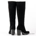 Стильные велюровые сапоги на устойчивом каблуке с высоким голенищем. Застежка на молнию по всей длине голенища. Байковая подкладка. Прорезиненная подошва с протектором.
