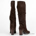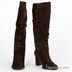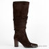 Стильные кожаные сапоги на каблуке с высоким голенищем. Прорезиненная подошва с неглубокими протекторами приклеена к основанию изделия. Подкладка и стелька выполнены из натурального меха, голенище с войлочной подкладкой. Средний подъем.