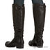 Отличные сапоги из натуральной лаковой кожи без каблука, украшенные декоративными хлястиками. На внутренней стороне застежка на молнию. Высота каблука: 3 см, высота голенища: 30 см