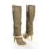 Эффектные сапоги от Grey Mer. Особое плетение замши, актуальный оттенок хаки. Изящная шпилька. Лаконичный декор в виде ремешков. Удобная колодка. Двойная простроченная подошва. Превосходное итальянское качество.