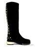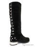 Винтажные сапоги выполнены из натуральной замши.Изюминкой этой модели являются металлические "шипы" и крупные стразы. Еще одна необычная деталь декора – каблук с металлической вставкой. Внутри - мех овчины и байка.Подошва-натуральная кожа с профилактикой из противоскользящего и износостойкого материала.Высота каблука 4см.Высота голенища ок39 см.Объем голенища регилируется пряжкой..Обувь рекомендуем подбирать размер в размер.Произведено в Турции.