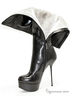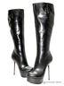 Восхитительные женские сапоги от Klimini. Эта изящная модель выполнена из натуральной нежной блестящей кожи черного цвета. Высокий изящный каблук компенсируется платформой. Внутренняя отделка выполнена из натурального меха до щиколотки.голенище - из ворсина.Для регулирования объема голенища добавлена резинка.Высота каблука ок 14,5см,высота плато ок.4см.Высота голениа ок 39,5см.Объем голенища ок.36 см.Рекомендуем подбирать обувь размер в размер.