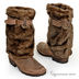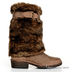 Стильные женские сапоги на толстой подошве с небольшим широким каблуком. Голенище отделано мехом, декорировано ремешками с пряжкой.