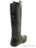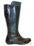 Необычные сапоги из натуральной кожи черного цвета.Декорированны по голенищу сапога с 2-х сторон кожей зеленого цвета.Сзади на обуви регулируемые резинки. Устойчивая удобная подошва . Закругленный нос. Застежка на молнию сбоку.Мягкая, комфортная, впитывающая влагу стелька из кожи создает оптимальный климат внутри обуви.На подкладке: обувной шелк.Высота голенища: ок. 37см. Обхват голенища-ок 37см.Производство: Бразилия.Меньше на размер.