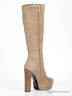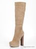 Модные сапоги выполнены из натурального велюра. Подкладка дарит тепло и комфорт. Высокий яркий каблук и платформа зрительно удлиняют ноги. Материал подкладки: евромех.